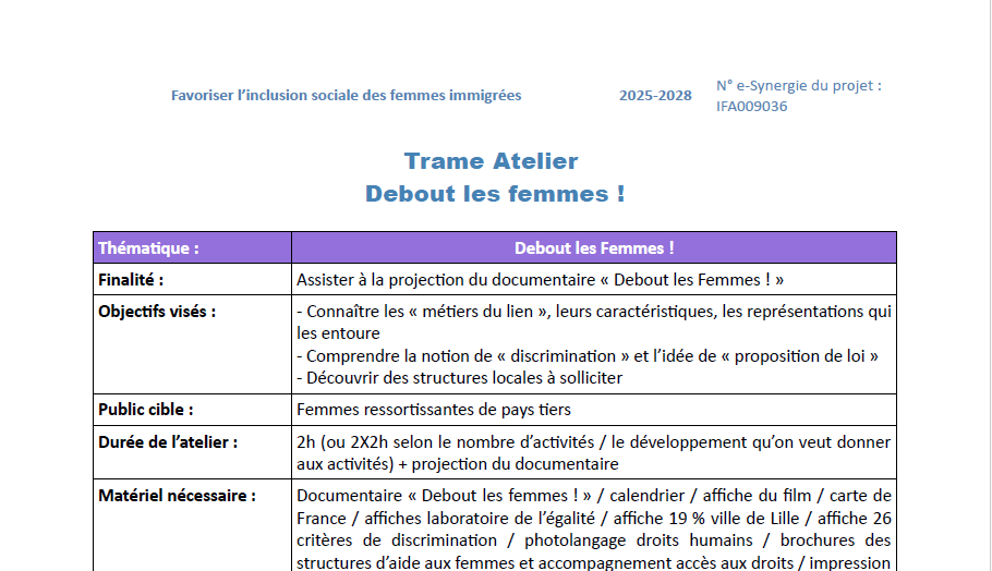 Trame d'animation d'un atelier en vue d'assister à la projection du documentaire "Debout les femmes!"
