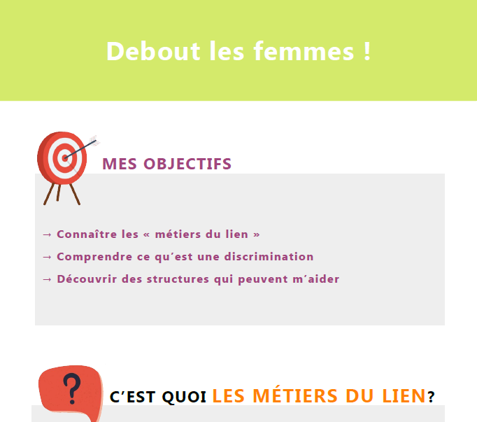 Santé Femmes Discriminations Famille et éducation Vie quotidienne Accès aux droits Insertion professionnelle Société Outils d'animation